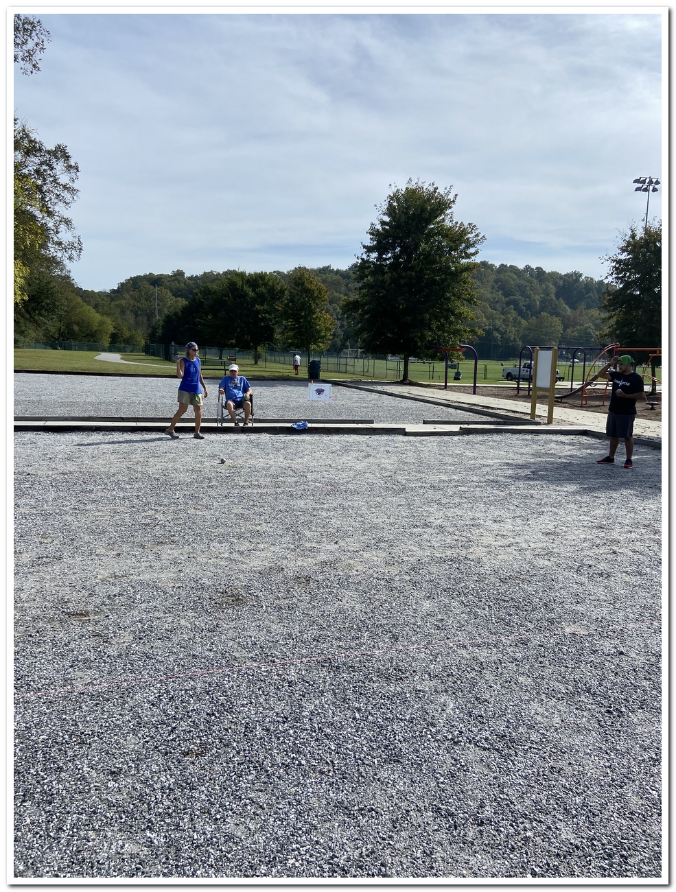 Shirley and I dropped off our petanque equipment cargo trailer and also managed to get in some social play.